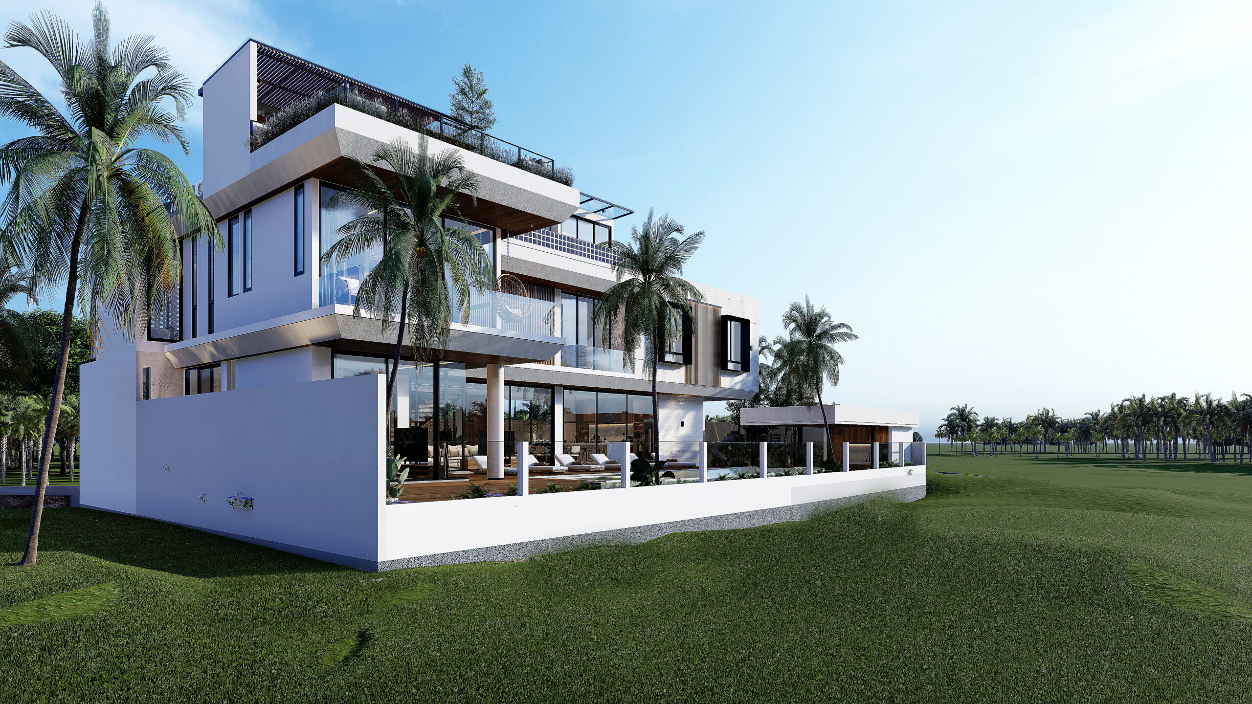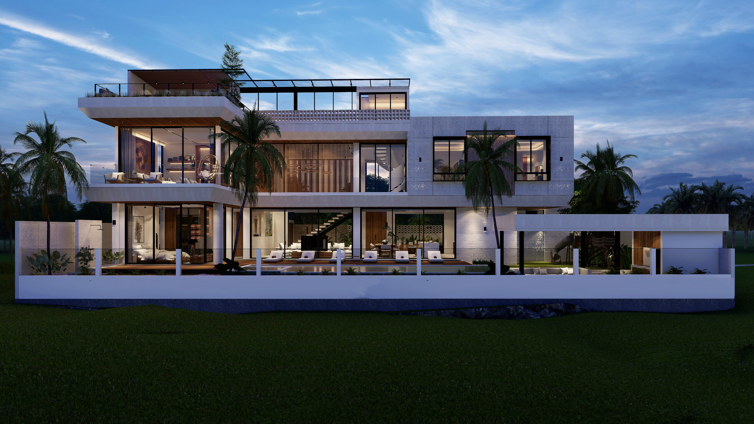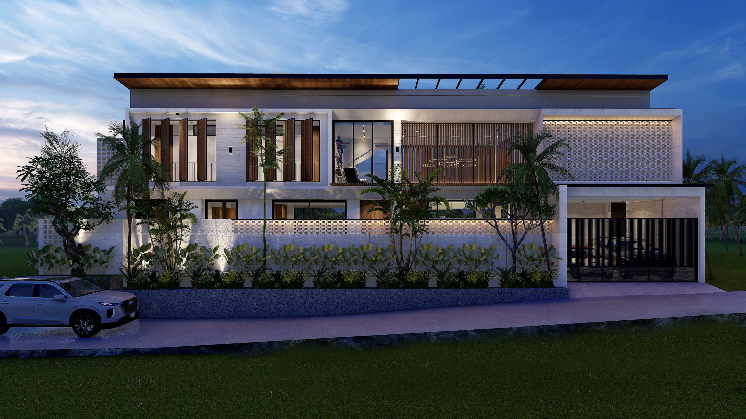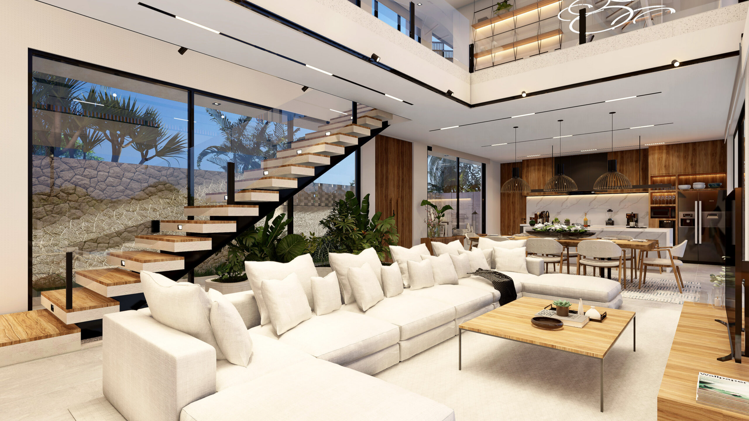 The concept and theme of the architectural design in this project is modern tropical bright. Where our dominant architecture is displayed with bold geometric shapes combined with natural materials such as stone, wood, and pool water elements with tropical plants, creating the impression of a residence like a Balinese villa with a holiday vibe every day.