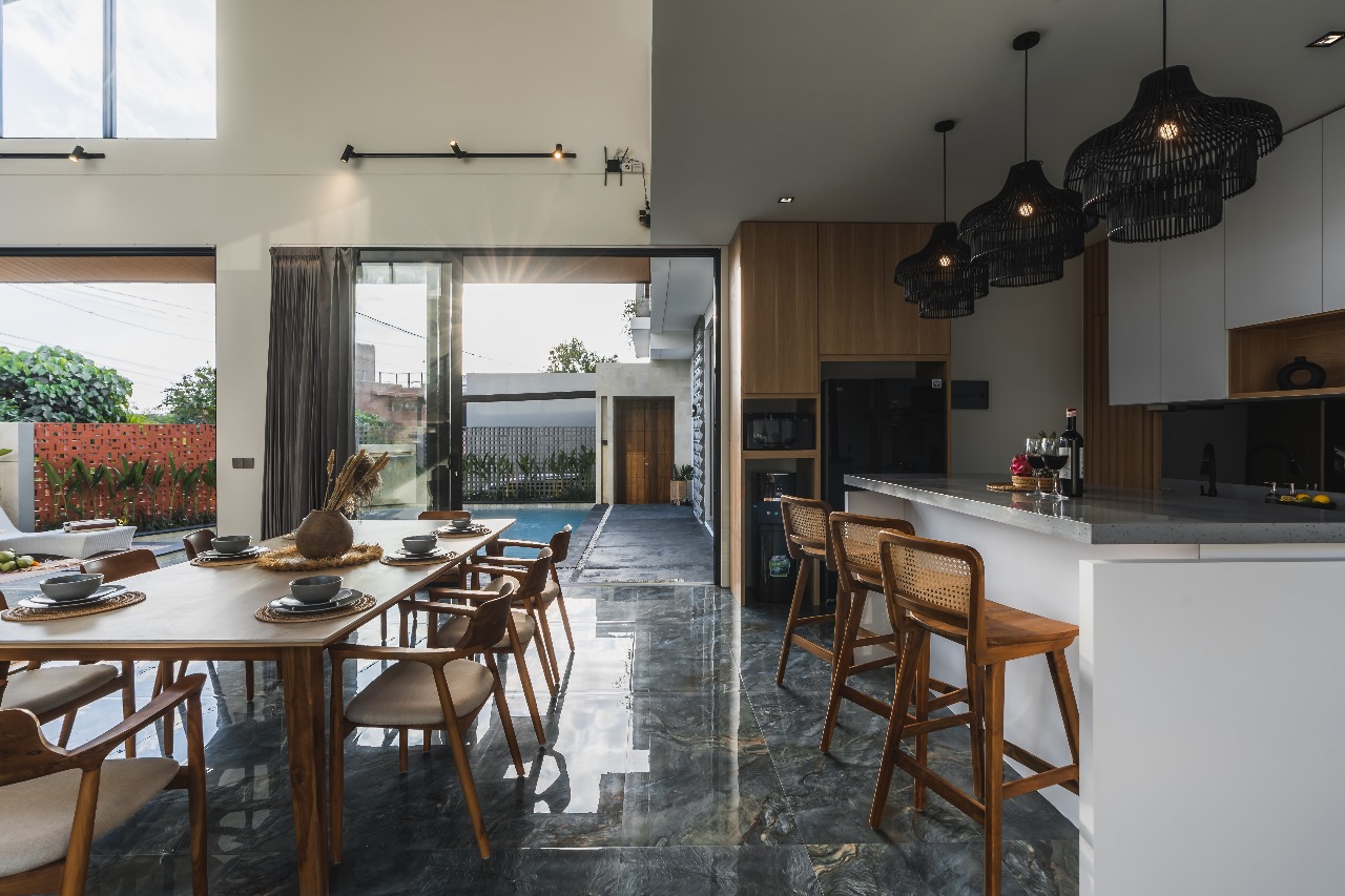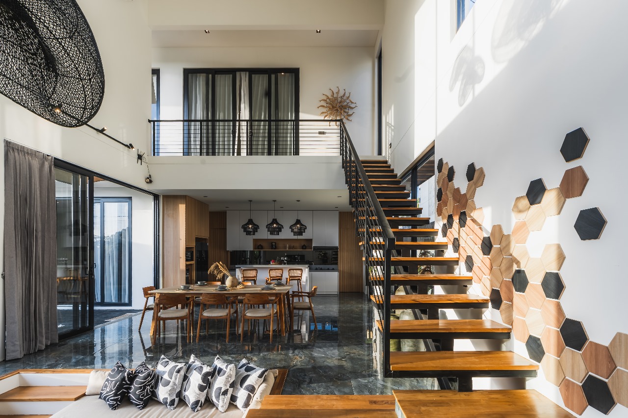 The design ideas and themes in this project focus on showing up the unique appearance of the villa with contemporary architecture. We collaborate with the client who is also a designer. This results in interesting and unique work in terms of architectural appearance, interior and layout arrangement in this project.